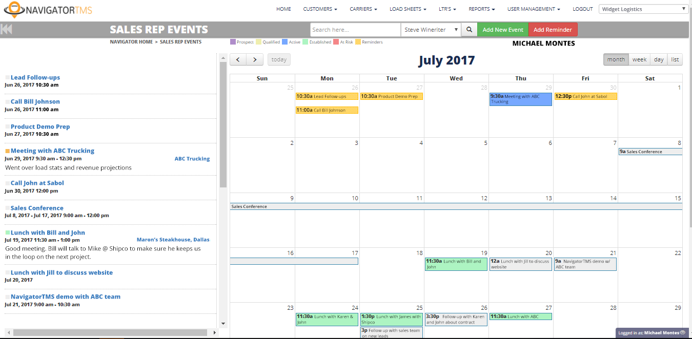 The event calendar is part of the internal CRM and designed to give sales reps and management up-to-date client meetings and outcomes. The meetings are color coded to match the part of the sales funnel each client is currently in. Users are also given the ability to set reminders, so they follow up with clients at the appropriate times and keeps prospects from falling through the cracks. The sales activity report is the other part of the CRM, which displays individual or team sales funnels. These funnels can be filtered to any potential code and over any time frame you are searching.